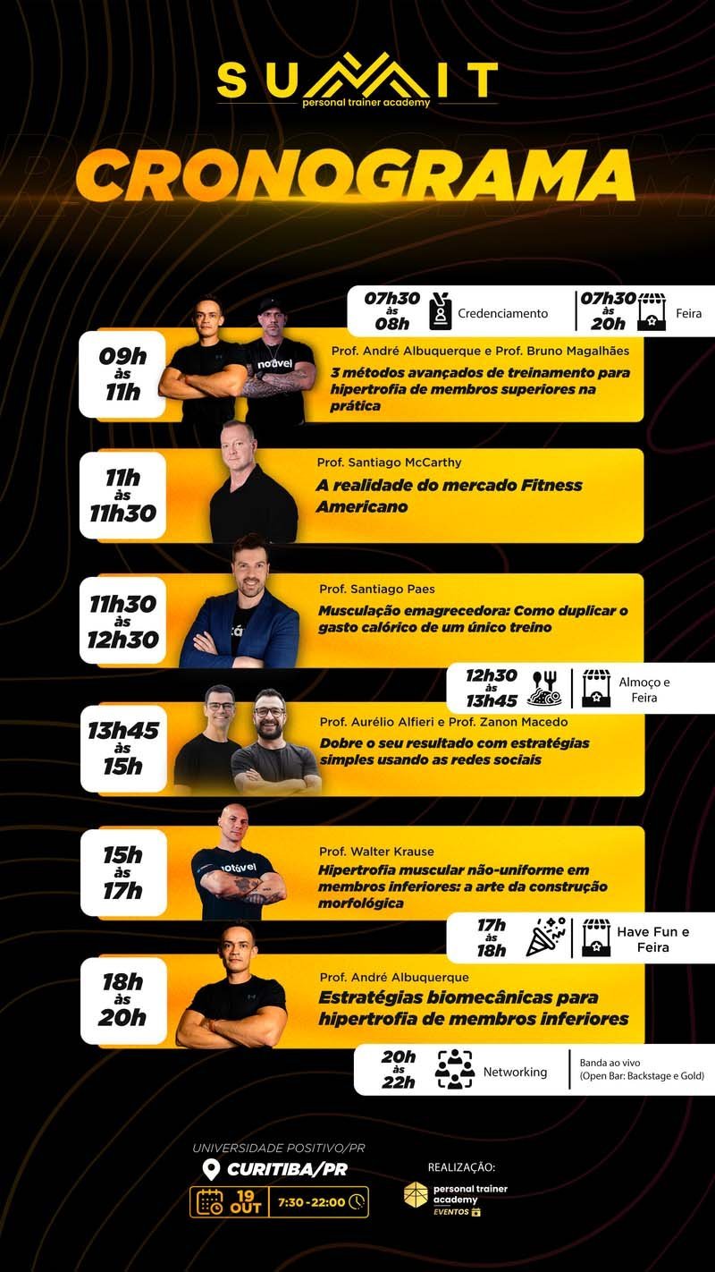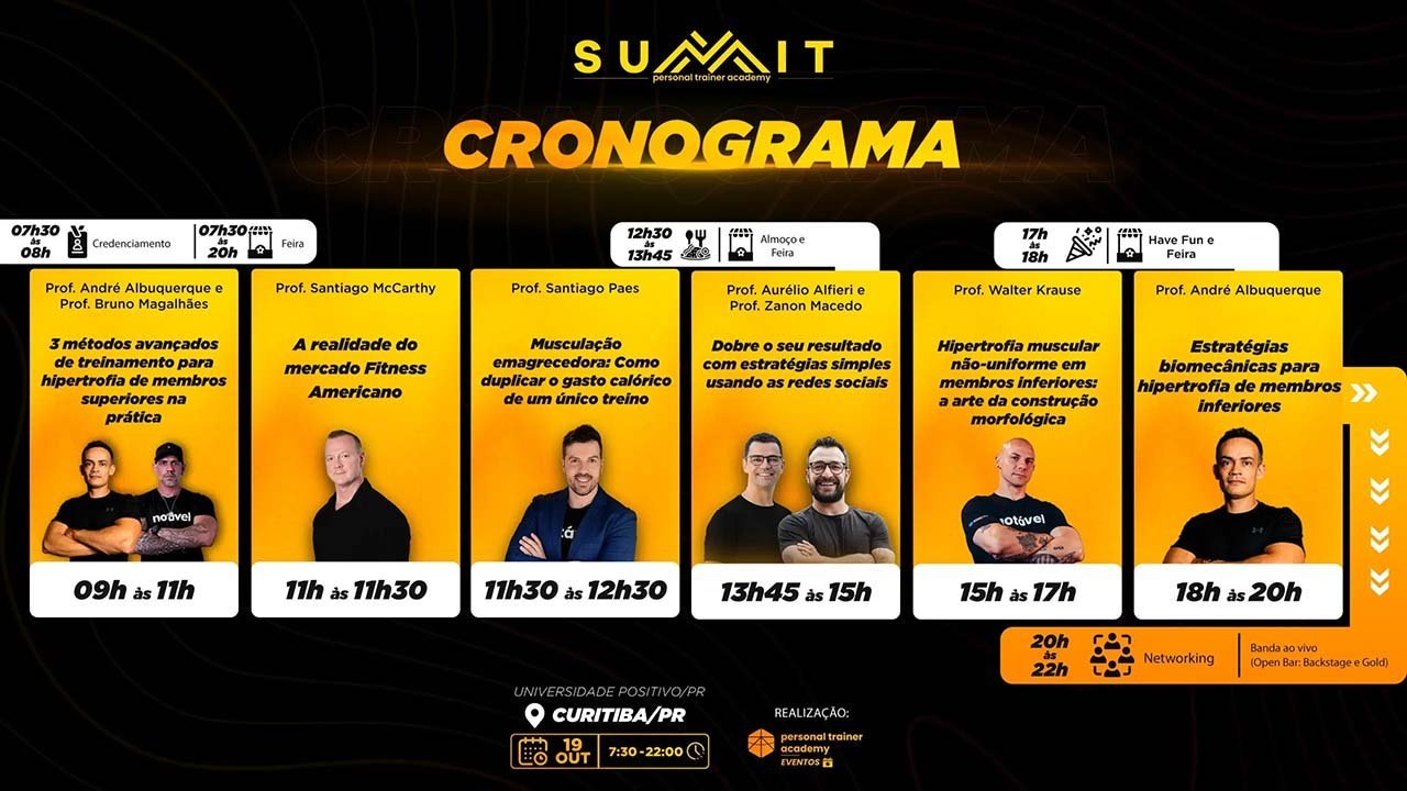 vai expandir os seus conhecimentos sobre as novidades do mercado, aumentar o seu network e ter contato com os maiores especialistas em Treinamento de Força do país.